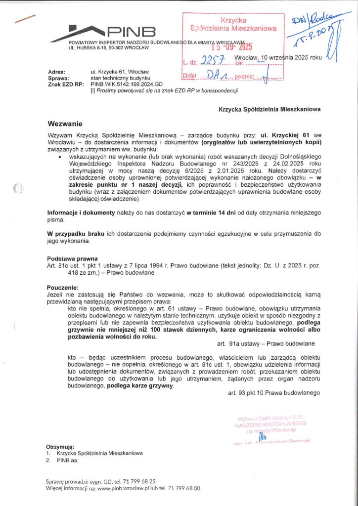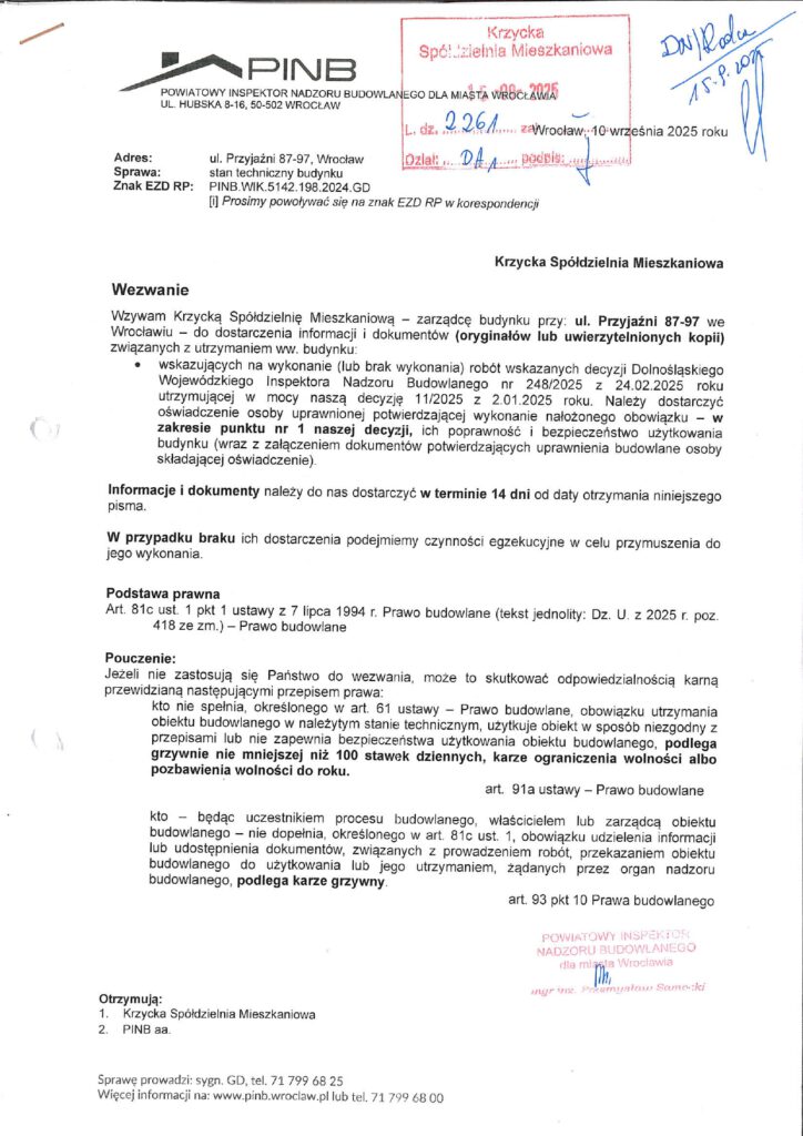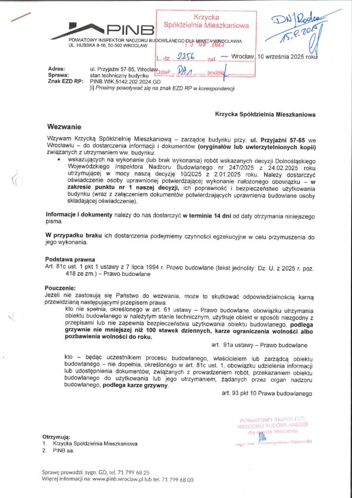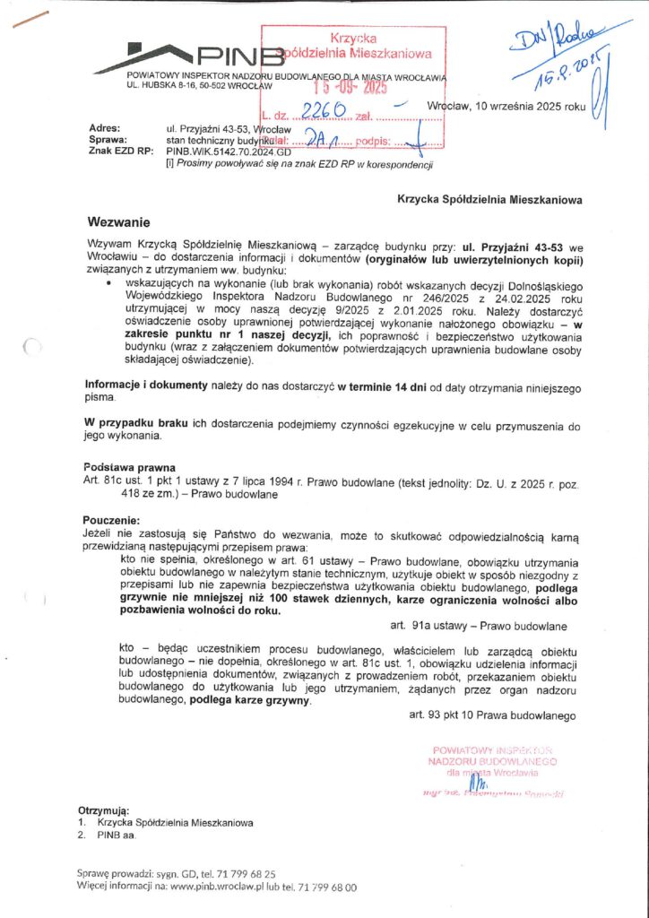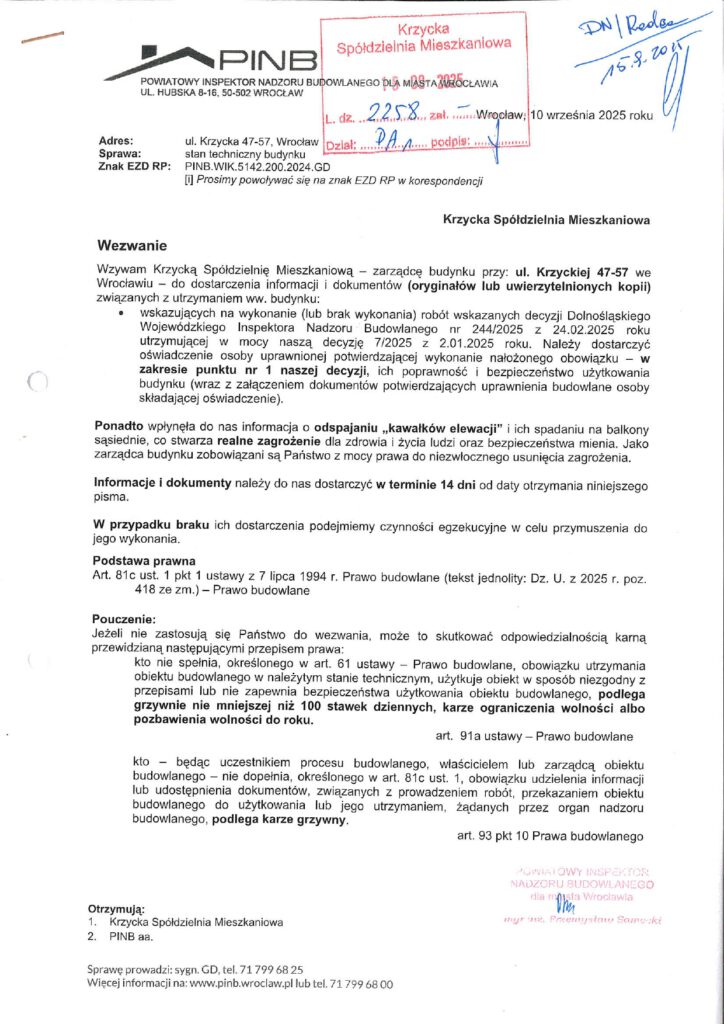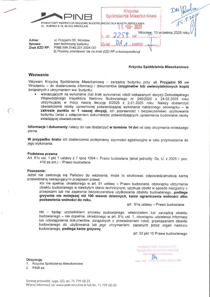 WEZWANIA Powiatowego Nadzoru Budowlanego we Wrocławiu