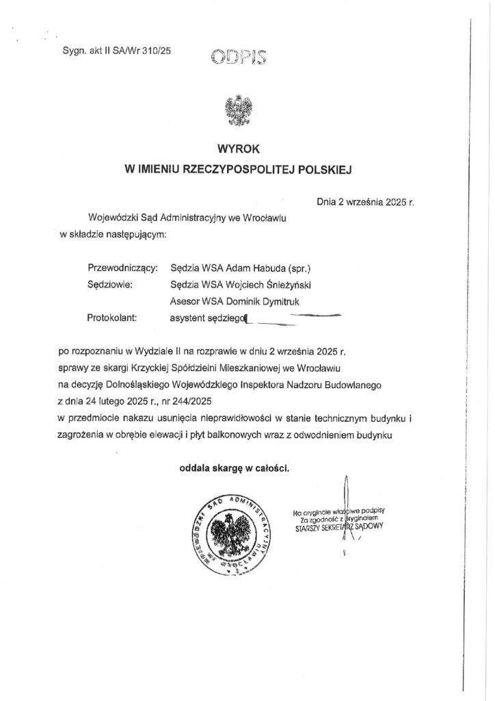 WYROK Wojewódzkiego Sądu Administracyjnego we Wrocławiu